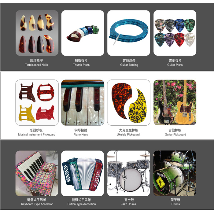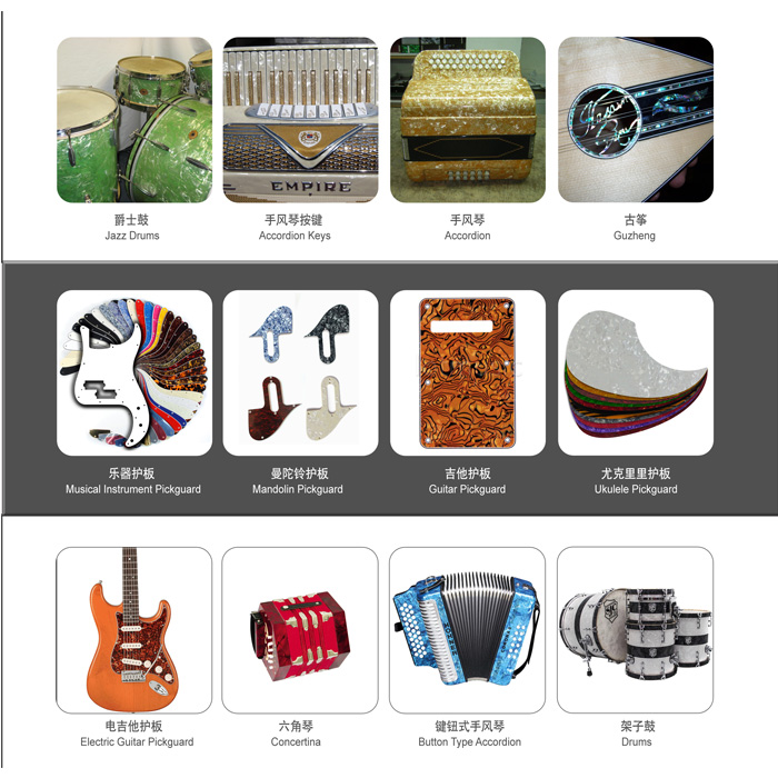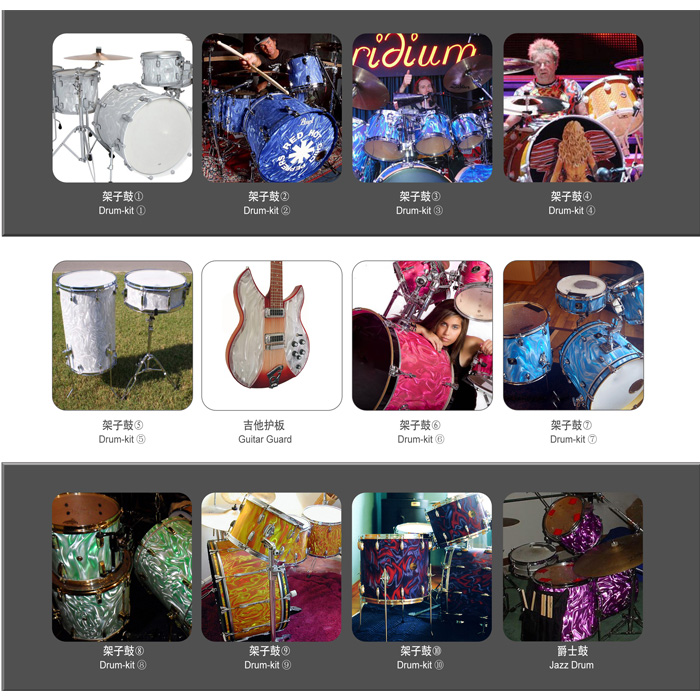 樂(lè)器裝飾板、裝飾膜,聆聽(tīng)著一段段美妙動(dòng)人的旋律,只應(yīng)天上不在人間。二胡的蕭瑟纏綿;古箏的高山流水;琵琶的珠落玉盤(pán);吉他的蕩氣回腸;手風(fēng)琴的余音繞梁;爵士鼓的慷慨激昂。
