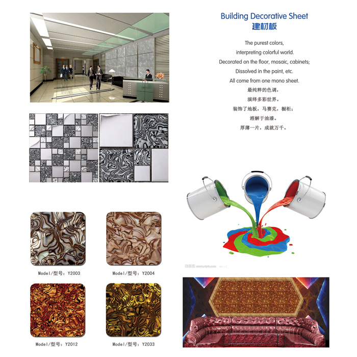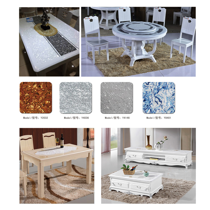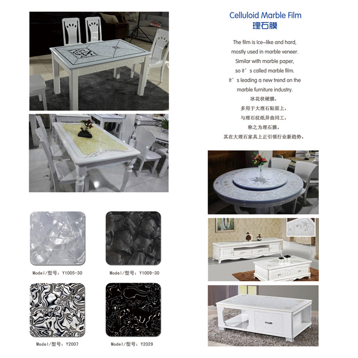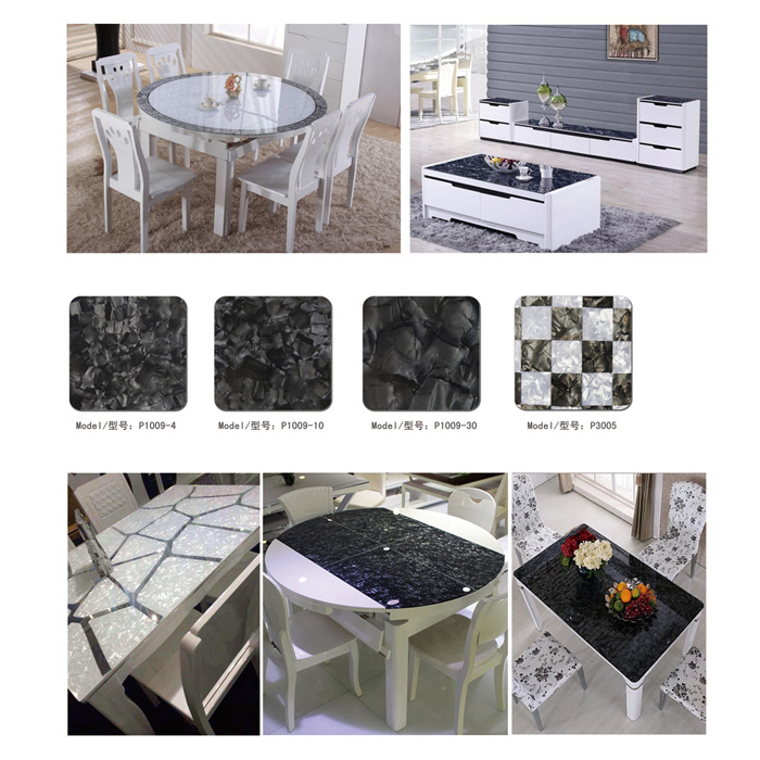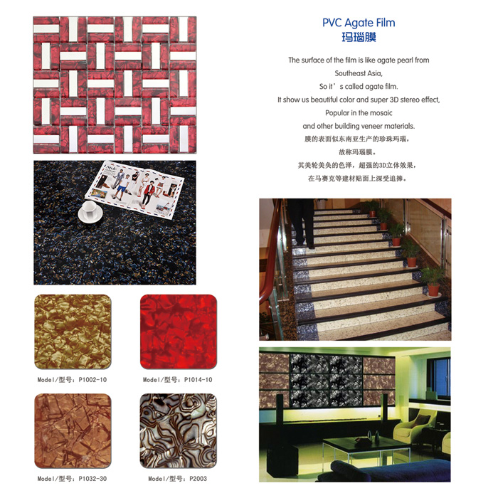 膜的顏色亮麗、花紋獨特、純手工拼花而成,故稱花式膜。其無法被復制的花色,獨一無二紋路效果,廣泛流傳于手機殼、紐扣、馬賽克等建材裝飾貼面行業。